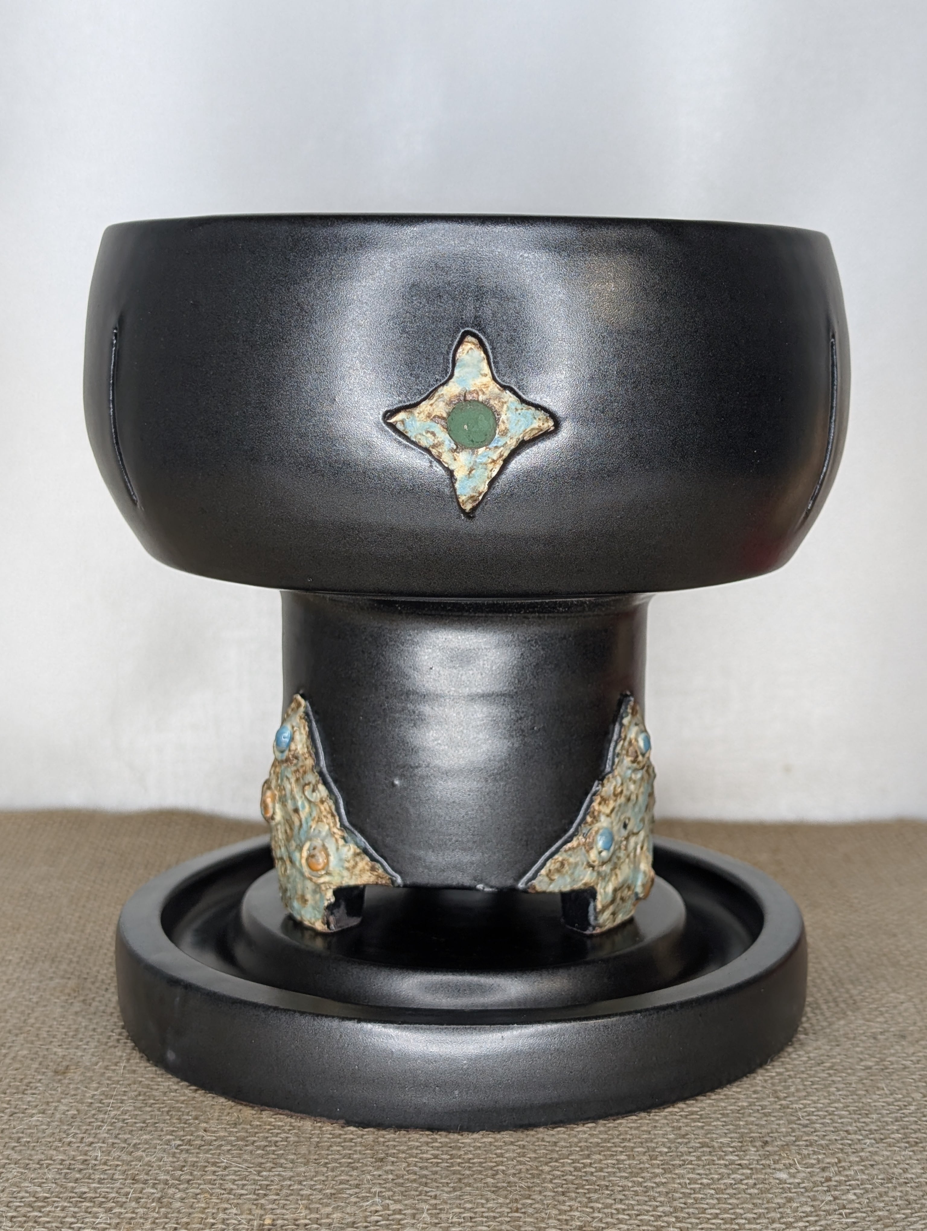 ・色は漆黒で、側面の3点と脚にのみに控えめな装飾を