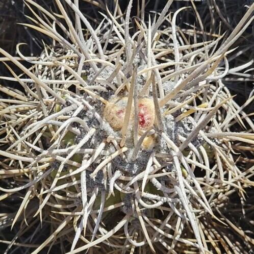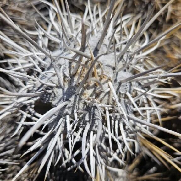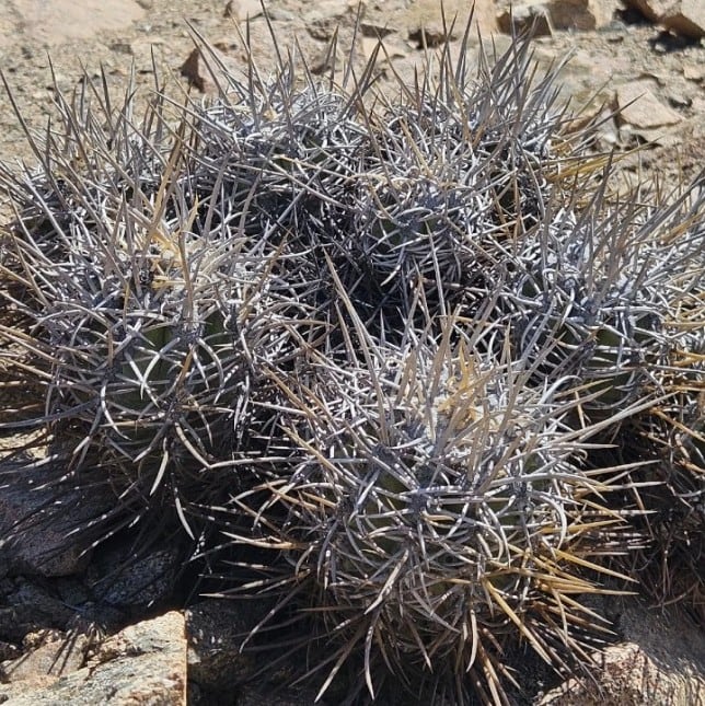 球体はやや扁平〜半球状で、表皮は厚く緻密な蝋質に覆われ、灰青色を基調に日照条件で淡い褐色を帯びる個体も見られます。刺は比較的整った放射状で、黄金色〜淡褐色の発色を示し、光を受けて柔らかく輝くのが特徴。ロカリティ差として、Botija系と比較するとやや落ち着いた色調と締まった刺配置を示す傾向があります。